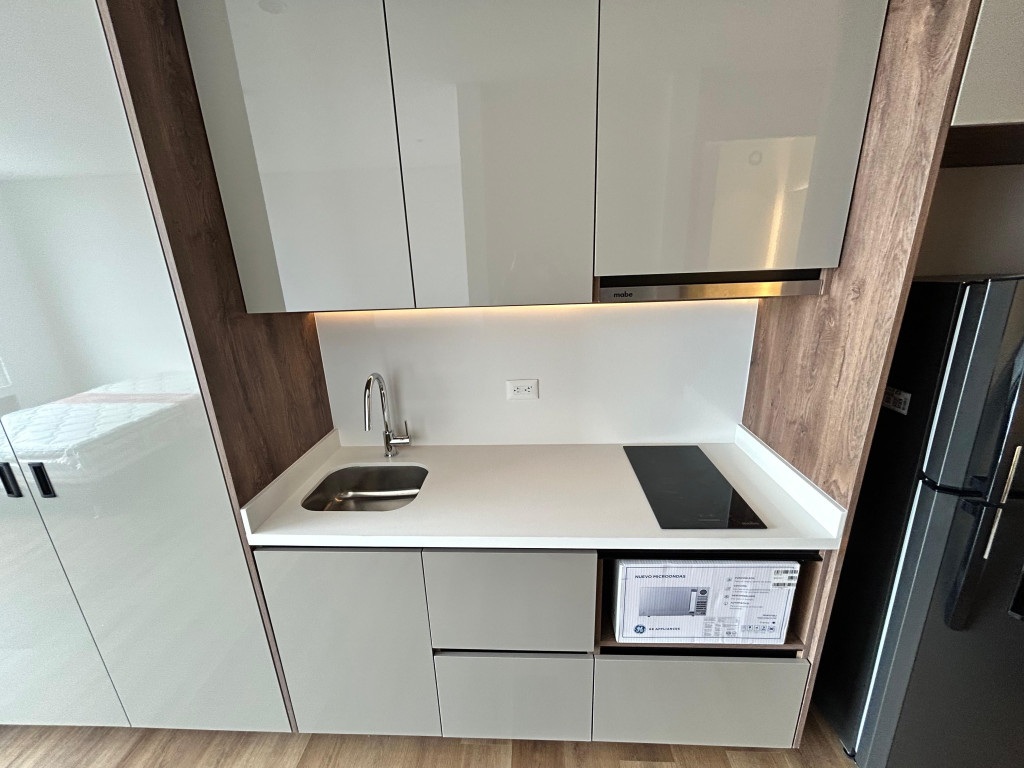 Rentamos espectacular aparta estudio o apartasuite en edificio VOU, vista occidental con sol de tarde, semi amoblado para estrenar, cuenta con nevera, lavadora, sofá cama, cama doble y tv, en el barrio molinos Norte, ubicación privilegiada sobre la carrera 9na y calle 106, equidistante a muchos puntos de interés, cc puente largo, santa Ana, unicentro, universidad militar, edificio cuenta con lobby, vigilancia 24/7, terraza BBQ, zona de bar, zona de fogata y parrilla, vista 360, cinema, salón social dotado, gimnasio, co working, turco.